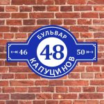 Изготавливаем адресные фигурные таблички с основой из пластика ПВХ 5мм или алюминиевого композита АКП 3мм. Надпись – пленка ПВХ Oracal 641.